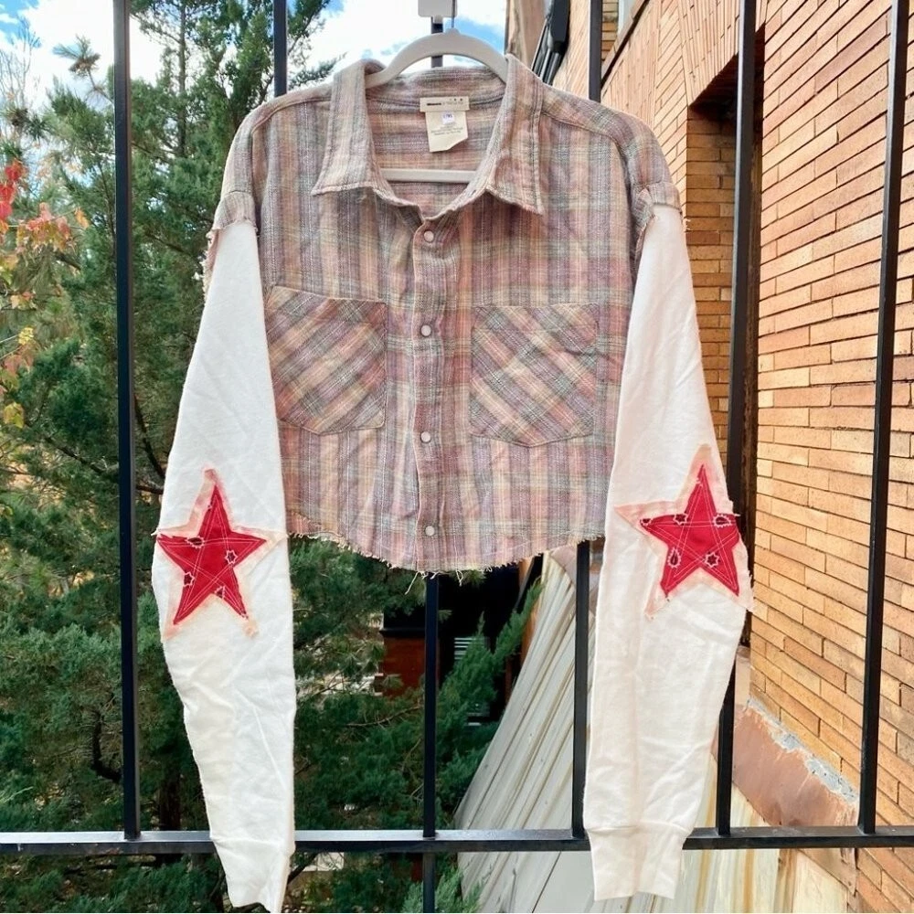 New Free People Tricia Fix Cropped Button Down Shirt Flannel Long Sleeve Sz L Xl Ebay