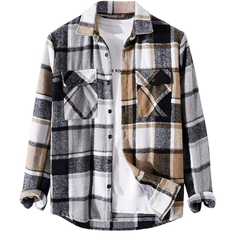 Grey Men S Dress Shirts Men Fashion Casual Fashion Color Matching Light Lapel Sanding Plaid Long Sleeve Shirt Jacket Walmart Com